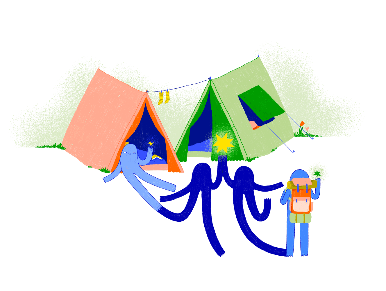 Auf dem Zeltplatz Cassia, im Burgtor Jettes, in der Kirche Cosma Joy.